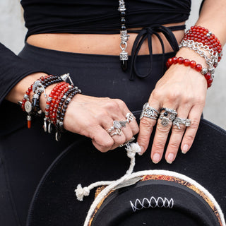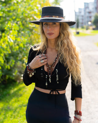 Each piece is uniquely hand-crafted in Bali, using silver and gold, natural crystals and gems, and sacred symbols in order to create powerful instruments for transformation and growth.