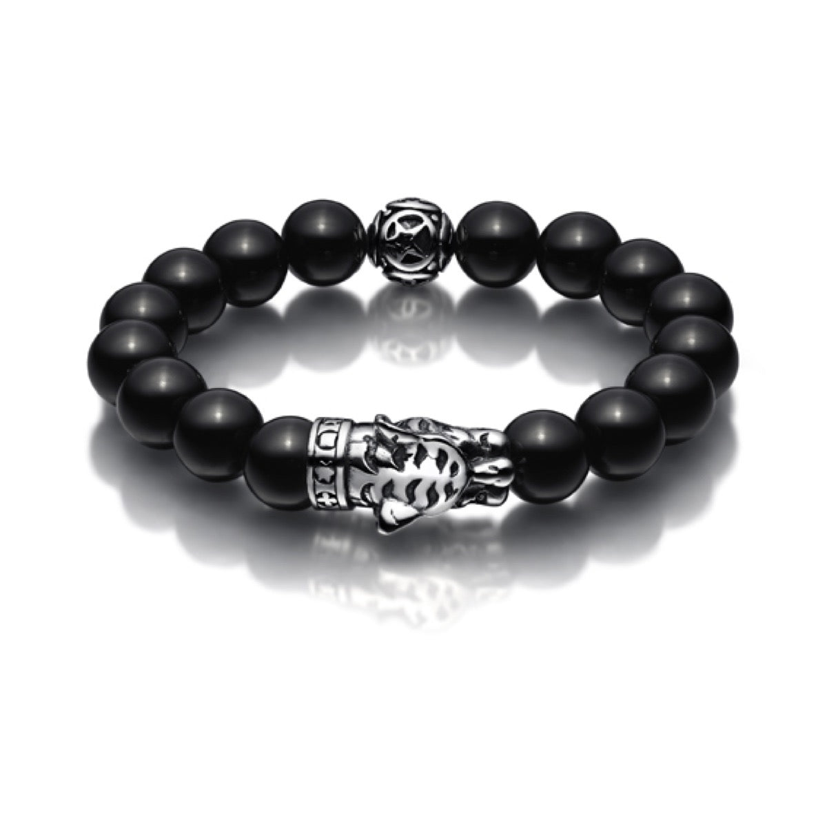 Bracelet Bead Black Onyx 10mm Plain w/sb+ charm Tiger Mid