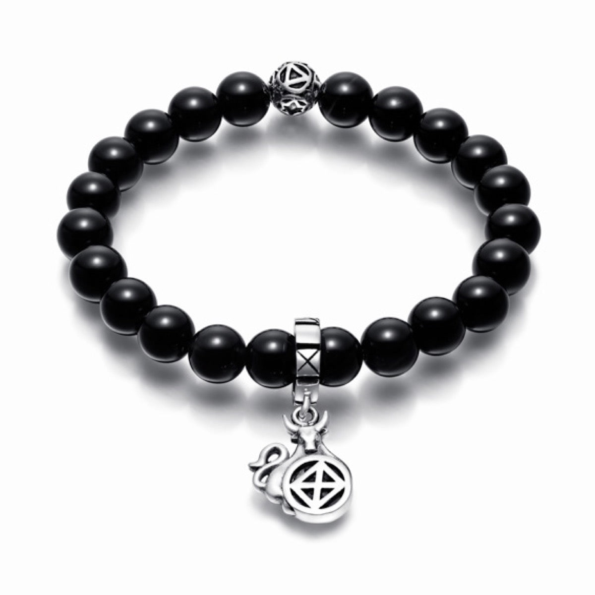 Bracelet Bead Black Onyx 10mm Plain with charm OX